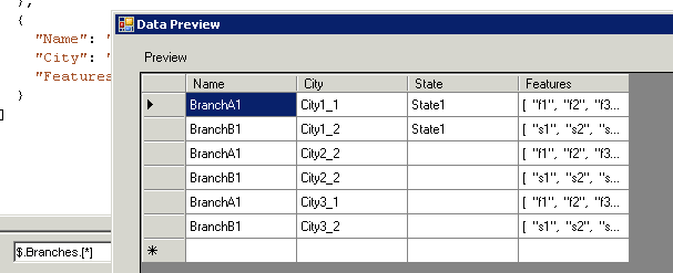 Defines how to read the JSON file or direct string or command line output. If you like to read from command line then simply prefix any valid command line with cmd:>. Here is more information about streaming data from command line output. Syntax: cmd:>[exe / bat folder]<exe-name> [arguments] First argument is exe name or full path for exe or bat file. Second part is arguments for command line program. You can use double quotes around exe / batch file path if it contains space. For *.bat or *.cmd file make sure to add [ @echo off ] in the first line (without brackets) else command itself is added in output. To read more please see product help file For CSV Reader Set [Ignore Blank Lines] option to True