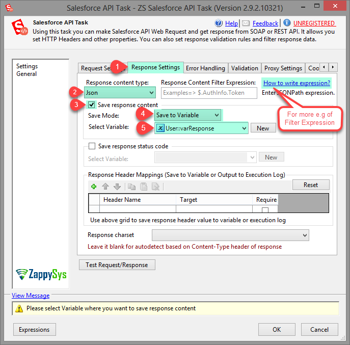 | ResponseContentFilter | If you selected ResponseContentType=XML or JSON then use this property to filter Response Content using JSONPath or XPath expression. | ||||||||||||||||||||||||||