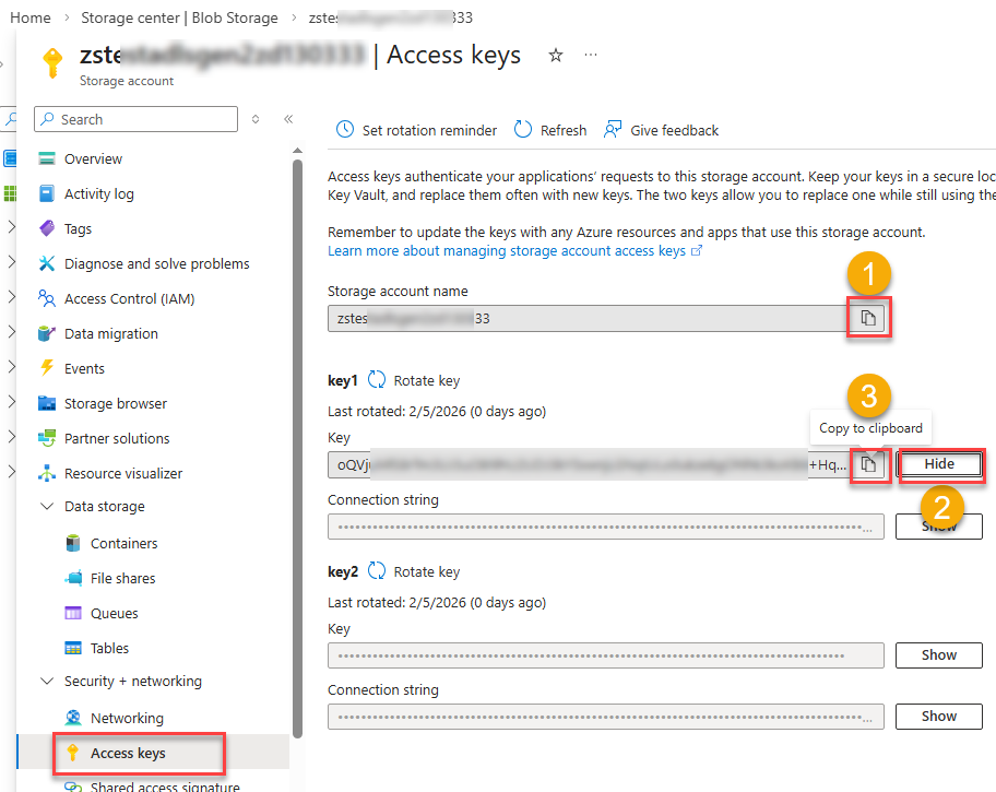 Azure Storage Account – Obtain Access Key for Connection API calls