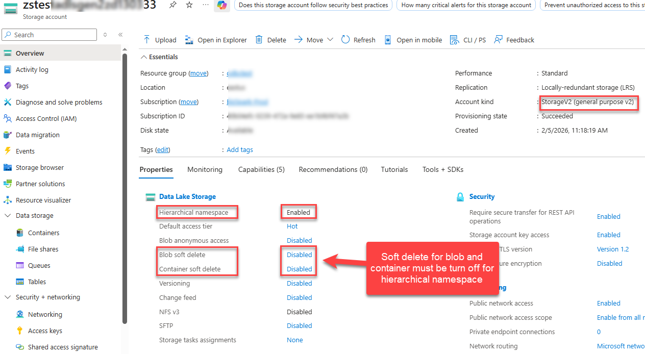 1. Check the Storage Account Type. Go to Azure Portal → Storage Accounts and verify that your account is ADLS v2 (Gen2).