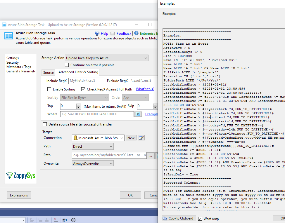 4. Use the ZappySys placeholder engine to dynamically build source and destination paths.