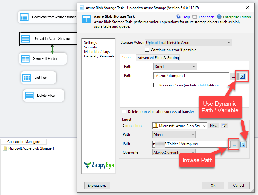Azure Storage File Operations in SSIS (Sync, Create, Delete, List)