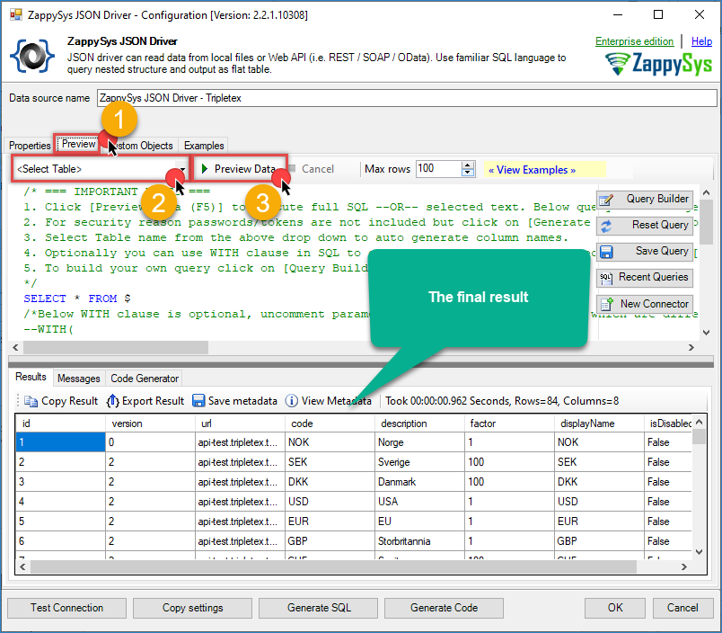 Tripletex – ODBC JSON Driver Final Result