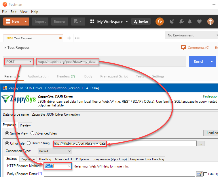 In the previous article, we learned how to copy settings from curl to ZappySys products, and in this article, we will continue on how to migrate Postman API call to SSIS / ODBC PowerPack. Postman is a very popular client tool to test API calls. Many API providers document how to call their API using Postman. In this article we will focus on how to use the same settings in ZappySys Products to implement API integration in SSIS or other apps like Power BI, Informatica, Excel, Tableau, SSRS… many ODBC apps.