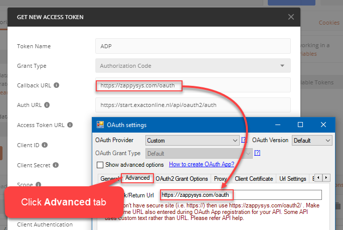 In SSIS PowerPack use the same configuration as above, just create ZS-OAUTH Connection Manager using instructions below: