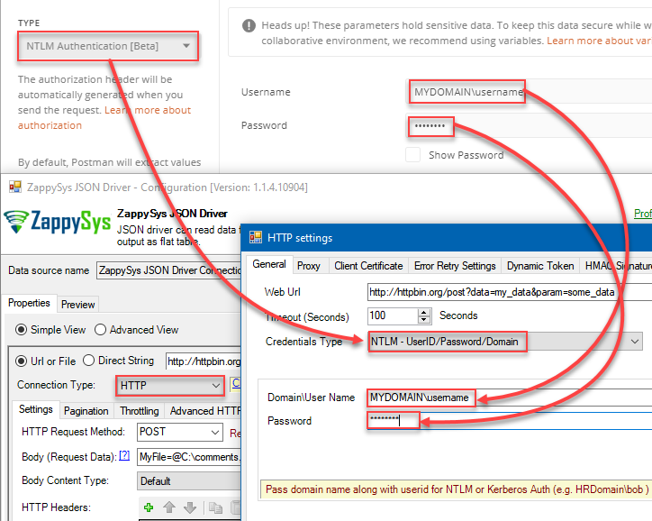 Authentication – Migrate Postman Basic Auth setting to SSIS / ODBC Driver (Login using Userid / password)