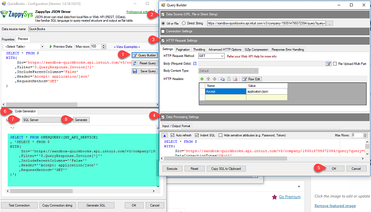 In order to start, we will show several examples. ZappySys includes an ODBC JSON / REST API Driver that will help you to call QuickBooks Online API, read various data from QuickBooks Online with ODBC. To learn more about QuickBooks Online API check this help file. To access QuickBooks Online data using REST API call, you need to create an Intuit Developer Account and then create QuickBooks Online App.Create an Intuit Developer Account