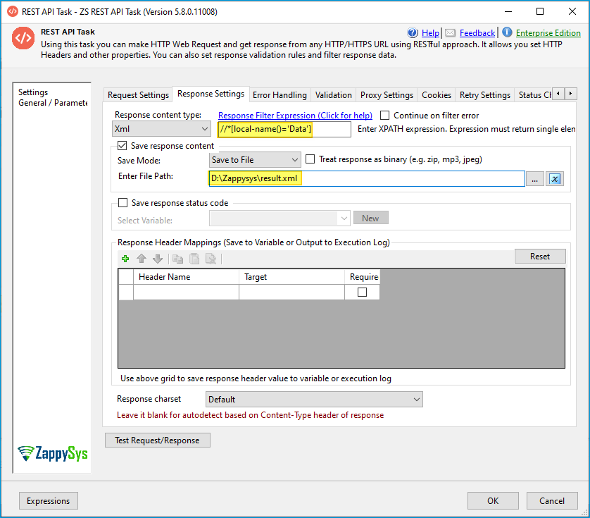 Configure the SSIS Rest API Task to filter XML Response using XPath