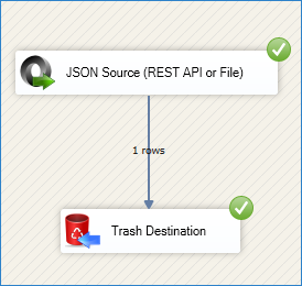 - Connect the output arrow from the JSON Source to the destination component.