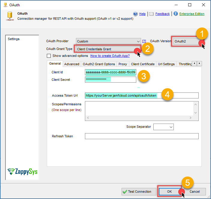 Whether you are using Jamf Cloud or an on-premises Jamf Pro server, you will learn how to configure secure OAuth 2.0 authentication without writing any custom code. Zappysys handles all the technical complexity, allowing you to focus on building your ETL workflows for managing device inventory, policy configurations, and compliance reporting.